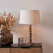 Add rustic elegance to your space with this tall, handcrafted Indian table lamp made from mango wood. Featuring a refined turned wood design and a natural wash finish, it offers a modern, clean-lined aesthetic that complements neutral interiors beautifully. Pair it with one of our slubby linen or cotton shades for a sophisticated, timeless look. Available in a small or large size.