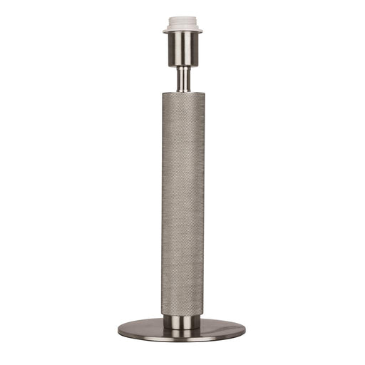 A refined and elegant candlestick table lamp base made in India, featuring a stepped circular foot and a silver metal finish. Subtle detailing at t...