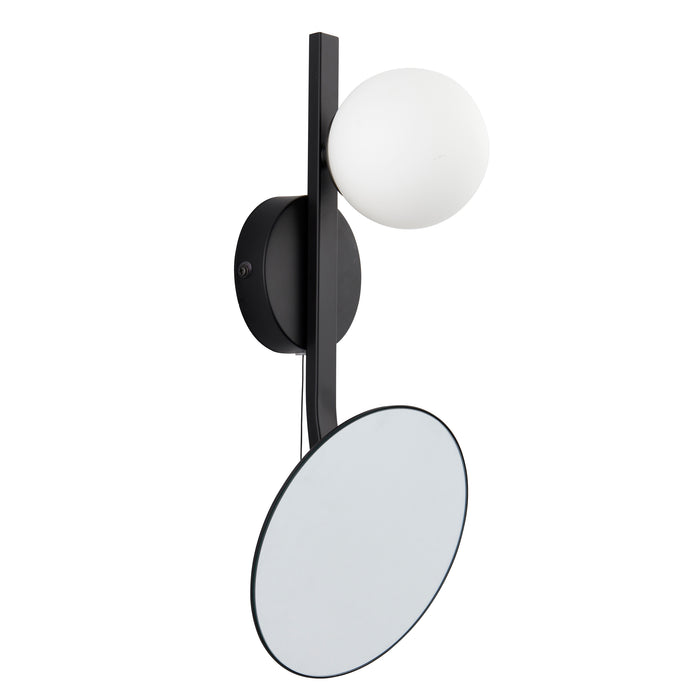 The bathroom just got an upgrade. A stylish, and space saving light for your bathroom, en suite or even the dressing room. This matt black wall light houses it's own 18cm adjustable mirror. Perfect for his/hers bathroom options, or a great addition to the cloakroom. There's even a pull cord for ease of use. IP44 Rated. This fitting is Class 2 (Double Insulated)