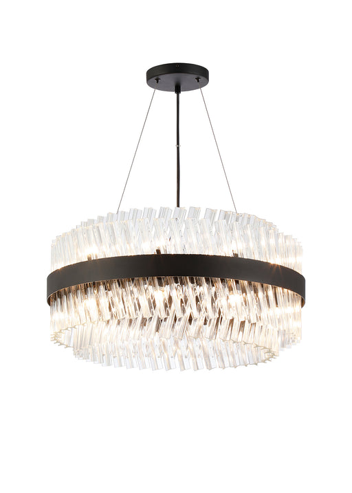 Elevate your living space with the Atlantica Crystal Pendant in Brushed Black Chrome or Satin Brass finish, a contemporary lighting fixture that se...