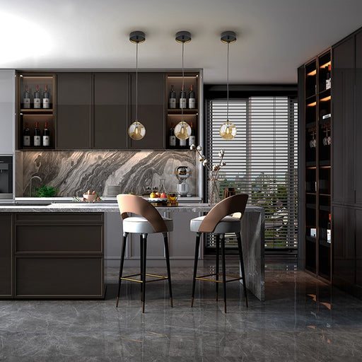 The Miriam Single Pendant is a sleek fitting made with a golden aluminium base and an amber blown glass shade; or a chrome base and smoked glass sh...
