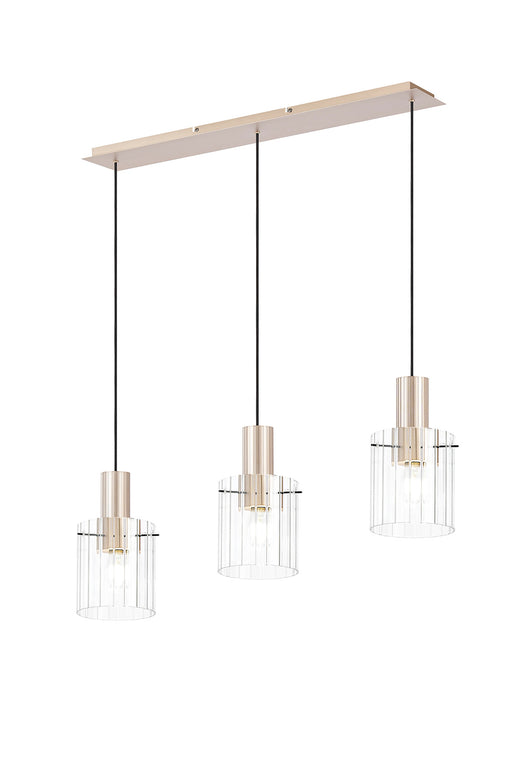 The Lavish range is a sleek collection featuring ribbed framework and wide lined glass shade. Available with dark grey, gold or beige coloured met...