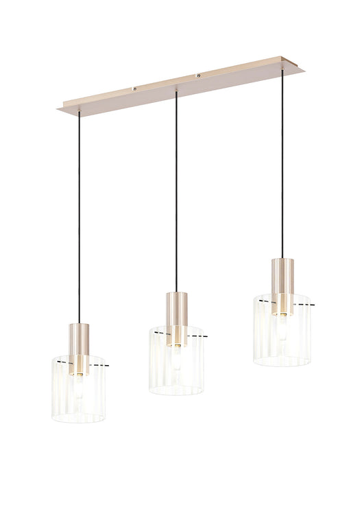 The Lavish range is a sleek collection featuring ribbed framework and wide lined glass shade. Available with dark grey, gold or beige coloured met...
