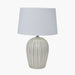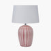 This ceramic table lamp features a white coloured curved shaped base, with a delicate coloured stripe design, perfect for adding a hint of colour to your interior. Topped with a self-lined white cotton effect shade, this table lamp will add a touch of style to your home. Available with Bule, Mulberry or Sage Green stripe.