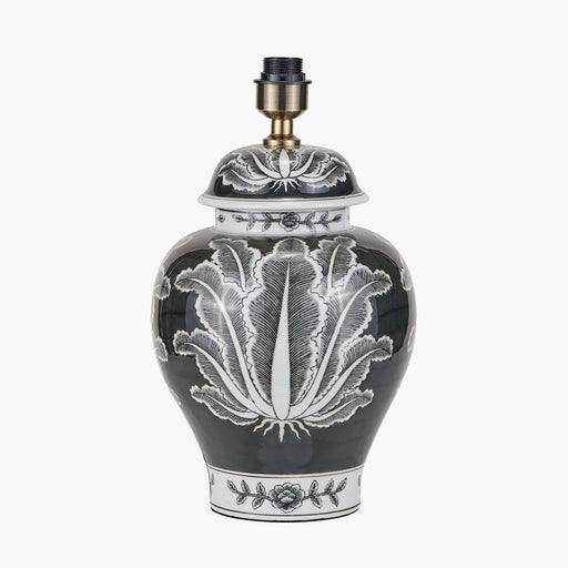 Elevate your space with our Asia Black and White Feather Ceramic Urn Table Lamp Base. With a stunning monochrome feather design, on an elegant urn-...