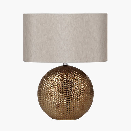 This ceramic table lamp base with a 'hammered' textured, metallic finish would be the statement of any room. Complete with its oval shade, this lam...