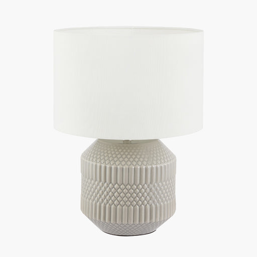 A classic shaped ceramic table lamp with an all-over pattern design in soft taupe or grey colour which would sit well in any interior. Add this neu...