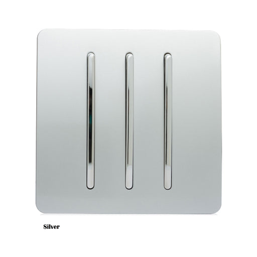 3 gang, 2 way, 10 amp rocker switches available in a vast range of colours to cater for any colour scheme and décor. Elegant, seamless design, retr...