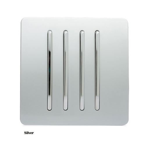4 gang, 2 way, 10 amp rocker switches available in a vast range of colours to cater for any colour scheme and décor. Elegant, seamless design, retr...