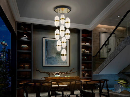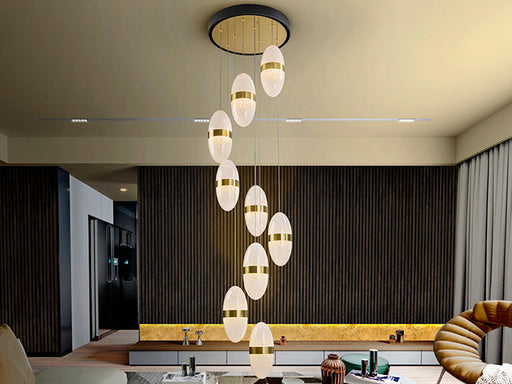 The Starla LED 12 light spiral has a sleek & modern design featuring 12 polyhedron shaped solid glass shades with decorative bubbles inside. Th...
