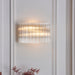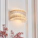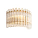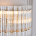 Add a touch of luxury to your interior with this elegant wall light, featuring a semi-circular brushed aged brass metal frame and two layers of vertically stacked glass rods. The staggered glass softly diffuses the light, adding a warm glow to walls, beautifully layering the light. Pair with one of the two matching pendants in this range for a cohesive look.
