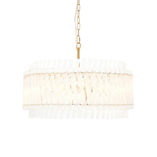 Add a touch of timeless sophistication to your interior with this exquisite 3 or 5 light pendant, masterfully crafted with brushed aged brass metal...