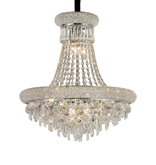 Empree is a spectacular, glittering 13 light tiered chandelier with stunning rectangular crystal prisms hanging symmetrically from a modern, chrome...