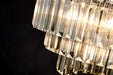 Dazzling substantial crystal pieces adorn Courtney's polished chrome and antique brass frames. The pendant, ceiling and wall lights create a tiered effect with the rectangular clear crystals. This creates a stunning effect when not in use or when illuminated by the E14 lampholders.
