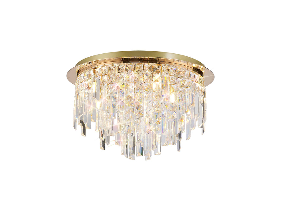 Chloe is an extensive collection of fully loaded lighting fixtures utilising square and rectangular crystals. Carefully calculated strands of crystal are hung in a systematic manner to deliver an outstanding effect. The framework has been kept to the bare minimum to create this spectacular range with outstanding results. This also makes the range universal because of its neutral appearance available in Chrome and French Gold. Ideal for lower ceilings and dimmable if using dimmable lamps. Part or a large product range.