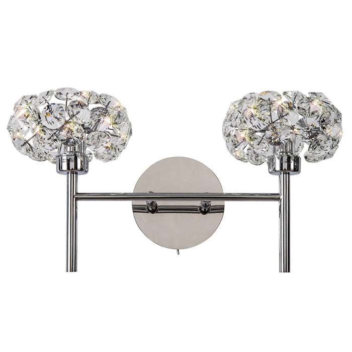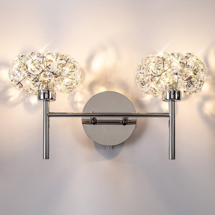 This double wall light is available in either a polished chrome or french gold colour finish, and features a crystal cluster around the light bulb. Dimmable if using dimmable lamps & has a rocker switch to turn on / off. Lots of matching items in the range, click below to view.