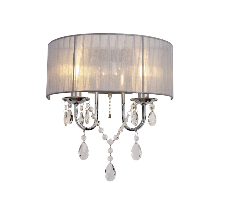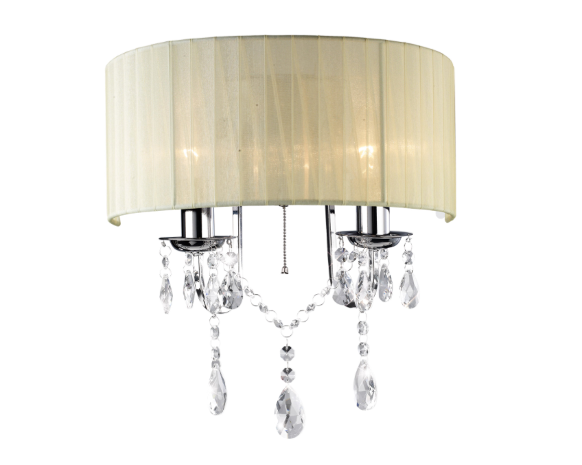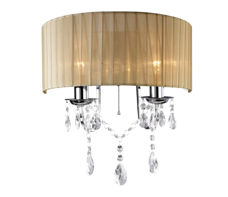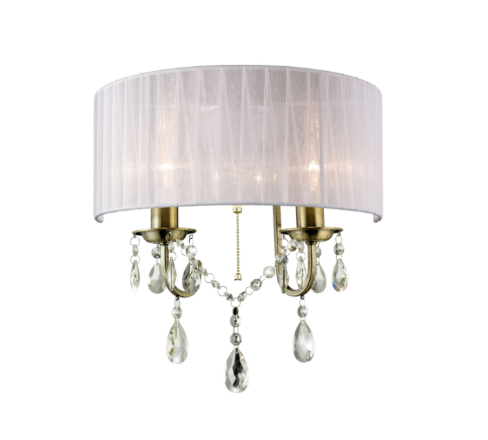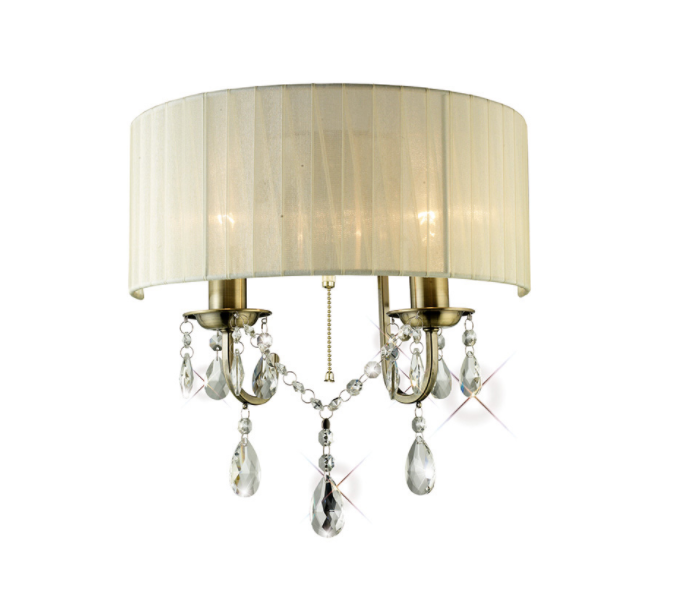 A gorgeous suite of pendants, wall, table and floor lamps. The frames are dressed in Asfour crystal and complemented with a fabric gauze shade allowing maximum light output. The combination of a classic Flemish frame, high quality crystal and fabric shade create a truly exquisite fitting. Each light also has a pull cord for ease of use.