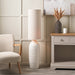 Introducing our stunning white grooved ceramic floor lamp. This Scandi-style piece features a linear pattern around the ceramic base adding tactility and style. The stunning floor lamp is finished perfectly with a tall, natural coloured cotton effect, self-lined lampshade. Matching table lamp also available