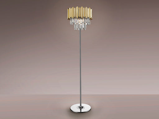 The Divinity is a grand floor lamp boasting glamorous faceted glass rods. It has a stunning chrome base with gold surrounding ABS pieces. This ligh...