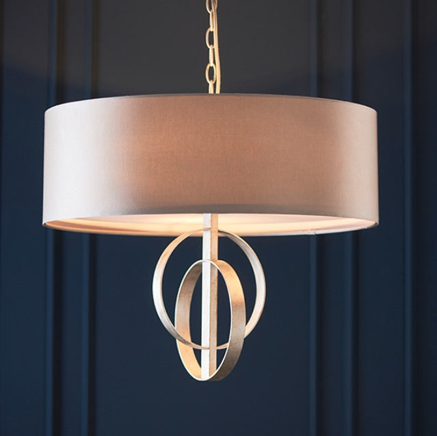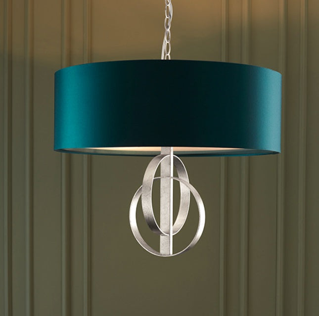The Darius is an Exclusive Collection. The Darius is an absolutely stunning range of lights, designed for an extra luxury touch to your home. The frame is a beautiful Antique Silver Leaf - Finished with either a Teal or Mink shade.