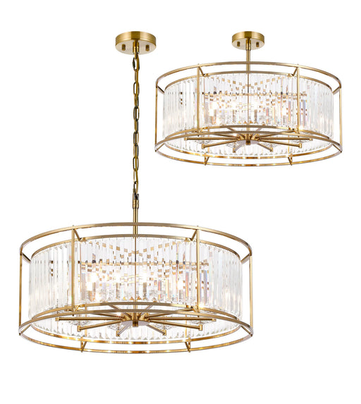 Who said crystal had to team with chrome. The Amelia shakes things up, with its stunning circular brushed brass or black framed pendant with a dou...