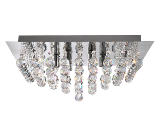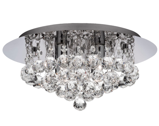 A beautiful range of drop glass flush fittings mounted on a Polished Chrome or Gold finish base, centrally filled with Asfour crystal spheres. The...