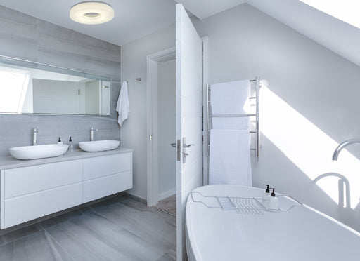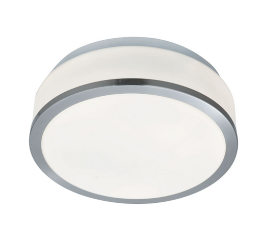 The Discus flush fitting with opal glass shade and chrome or satin silver trim is a budget friendly IP44 rated light - ideal for any bathroom or ki...