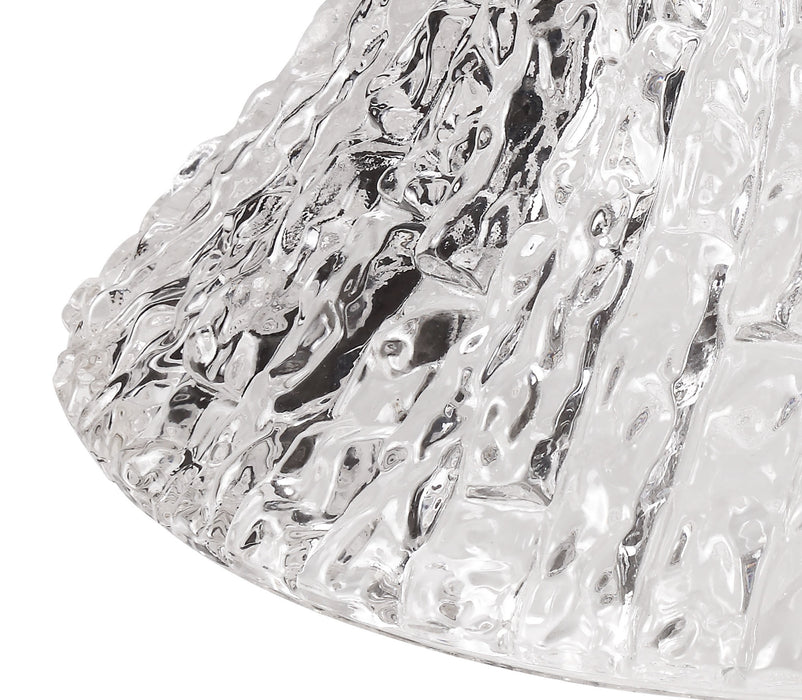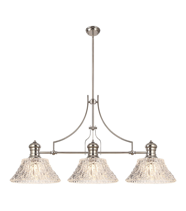 Jayme's unique shapes project a modern ambience which is partnered with traditional colour finishes to create a more contemporary collection. The Jayme patterned glass shade fits perfectly onto our Jayme metal frames to create a striking pendant of your choice of colour. Pictured on the Jayme nickel bar pendant, options are to be selected separately for the complete item.