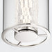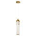 A salute to Raymond Loewy. Known as the ‘Father of Industrial Design’, the Achilles collection pays tribute to modest design details from the 50’s era. The “tail fin” end caps capture the unique and proprietary Crystal Pitch TM LED lamping, refracting light through the centre of the glass cylinder. Integrated & dimmable 3000K LED lighting is used in this collection. This fitting is height adjustable and has matching products in the collection. Available in Polished Chrome or Brushed Gold finish.