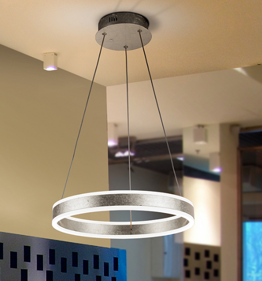 With a contemporary and sleek appearance, this chrome ring pendant is embellished with intricate clear acrylic detail. The fitting uses integrated ...
