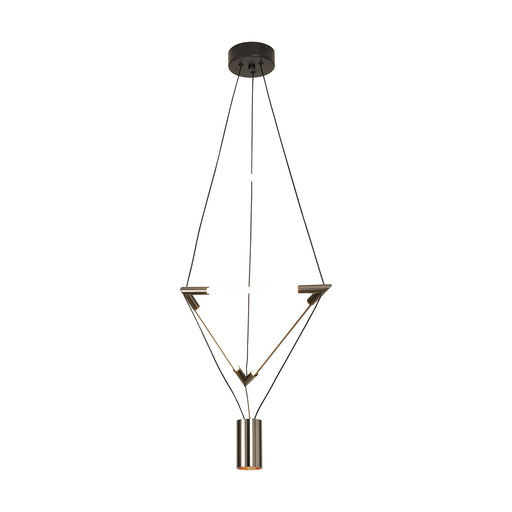 The Calliope Bar Pendant is a stylish modern fitting with a futuristic flair. The aluminium suspension is finished in a dark grey tone, and the shi...