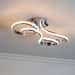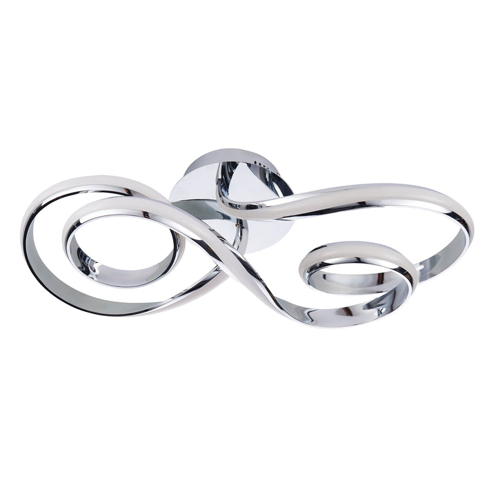A unique contemporary ceiling light with flowing illuminated curves, creating an amazing designer look for modern interiors. Chrome plated finish with white diffuser and Integrated LED. This fitting is Class 2 (Double Insulated).