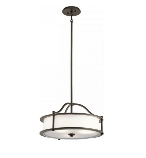 The contemporary Emorett collection has a clean, simplistic design in either an Olde Bronze or Classic Pewter finish with an off-white fabric drum ...