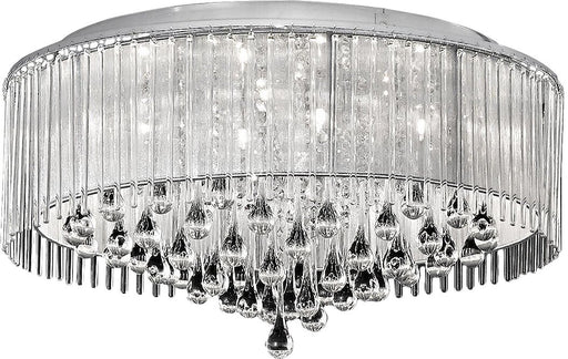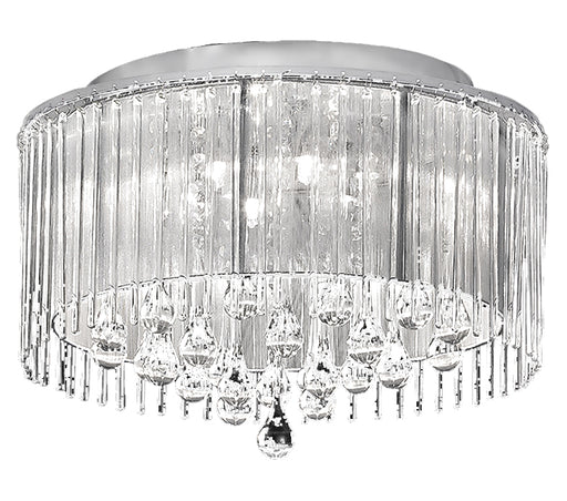 An impressive multi light decorative flush adorned with a mix of delicate slender glass rods and faceted glass beads, cascade down the spiral desig...