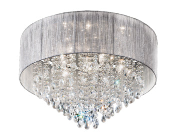 Create fairytale beauty with the Aria, its chrome finish with a drape of crystals hanging through a silver semi-transparent shade. With a variety ...