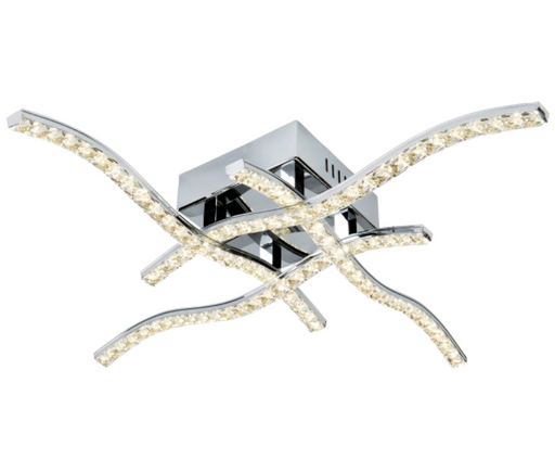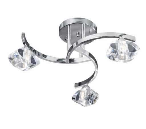 A unique contemporary ceiling light with a trio of flowing illuminated curves creating an amazing designer look. Chrome plated finish with white di...