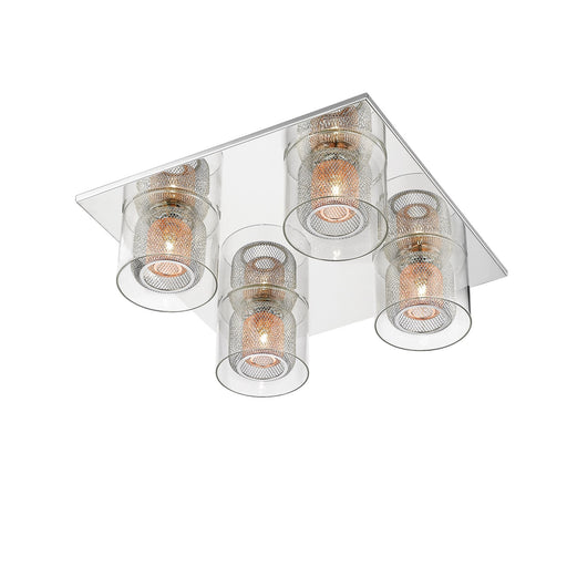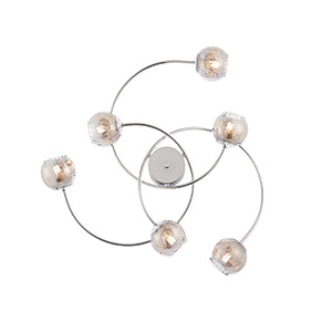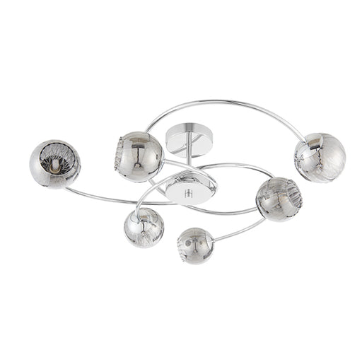 This ceiling flush includes 5 lights and beautiful chrome fretwork pattern shades attached to stylish curved arms. From the shades, a stunning patt...