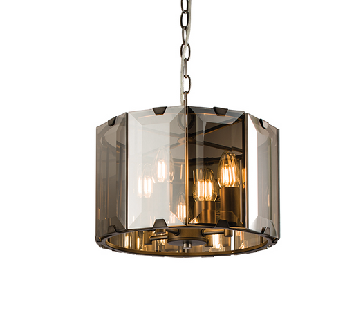 The stunning Amal pendant features high quality bevelled smoke glass panels. The Pewter frame gives a lovely touch to the overall look of the fitt...