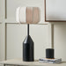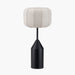 This elegant table lamp features a sleek black metal base, offering a modern foundation that contrasts beautifully with its structured natural shade. The organic texture and shape of the shade creates a soft contrast to the clean-lined metal base. Perfect for adding a touch of contemporary sophistication to a living space. Matching floor lamp & pendant also available.