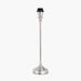 A refined and elegant candlestick table lamp base made in India, featuring a stepped circular foot and a silver metal finish. Subtle detailing at the top of the stem adds a touch of classic charm. Its balanced proportions make it ideal for smaller spaces, sideboards, or console tables. We recommend a 25 cm diameter lampshade to complete the look.