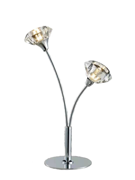 In chrome finish with clear glass spheres which have a smaller opal sphere inside. There is a switch on the base. Suitable for use with LED G9 lamp...