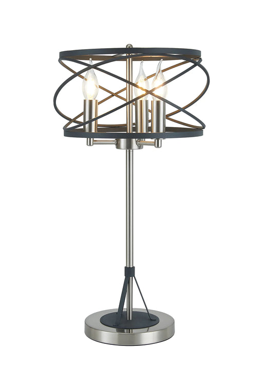 Featuring an intricately structured frame which encloses the three E14 lamp holders with over lapping angled rings. This table lamp emits a classic...