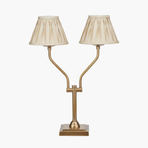 The Brant Table Lamp features an Antique Brass base, and beautiful mink pleated fabric shade. Perfect for the console unit, bedside or side table....