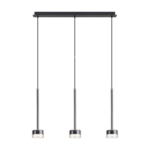 With a contemporary and sleek appearance, this chrome ring pendant is embellished with intricate clear acrylic detail. Three suspension cords suppo...