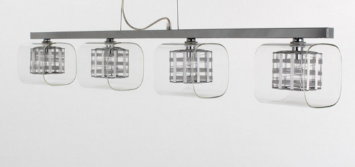 The clean linear shapes and silver frame lines of Khalifa allow for attention to be drawn to the unique bubble feature within the acrylic diffusers...