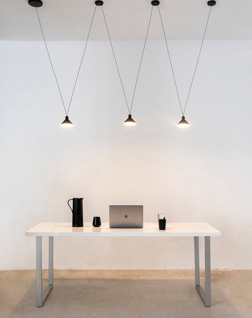 Get the on-trend designer look with this modern free flowing illuminated pendant suspended with delicate wires. Available in Textured sand white fi...