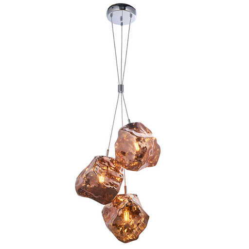 The Constellation range has multiple sizes available. The pendant has a rounded chrome ceiling plate that holds multiple sized drop balls with copp...