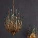 The teardrop-shaped Pavona Chandelier is inspired by birds and feathers; the fixture flows gracefully and evokes the elegance of a peacock’s tail. Beautifully crafted from steel in a contemporary gold finish, the nature-inspired piece is ornamented with double-sided, highly polished New Zealand, Aqua Blue coloured Paua Shells. This is a painstaking piece to realize, as the rods are bent by hand into the undulant composition and the luminous shells are hand-placed. The turquoise and gold chandelier will bring lively color to an interior thanks to the variations in the iridescent hues within each of the ornamenting shells. Height adjustable, dimmable and matching wall light also available.