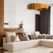 The undulating Druid pendant ring has a beautiful natural teak wood veneer with an acrylic diffuser for the LED light source. This fitting is height adjustable and available in two sizes, there are matching linear bar pendants available in this collection.