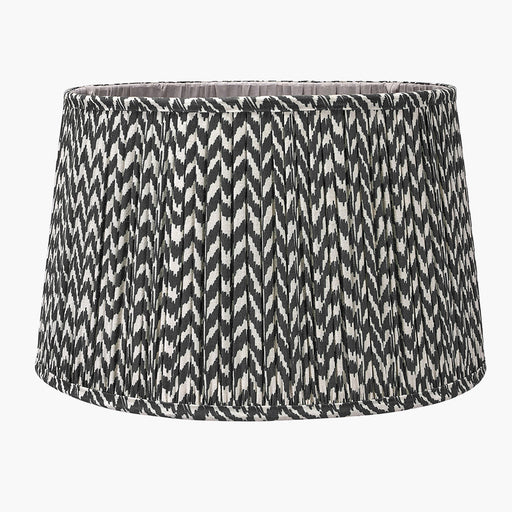 Featuring an in house curated print and reminiscent of the ikat style this tapered geo print is finished in a black colour and hand mushroom pleate...